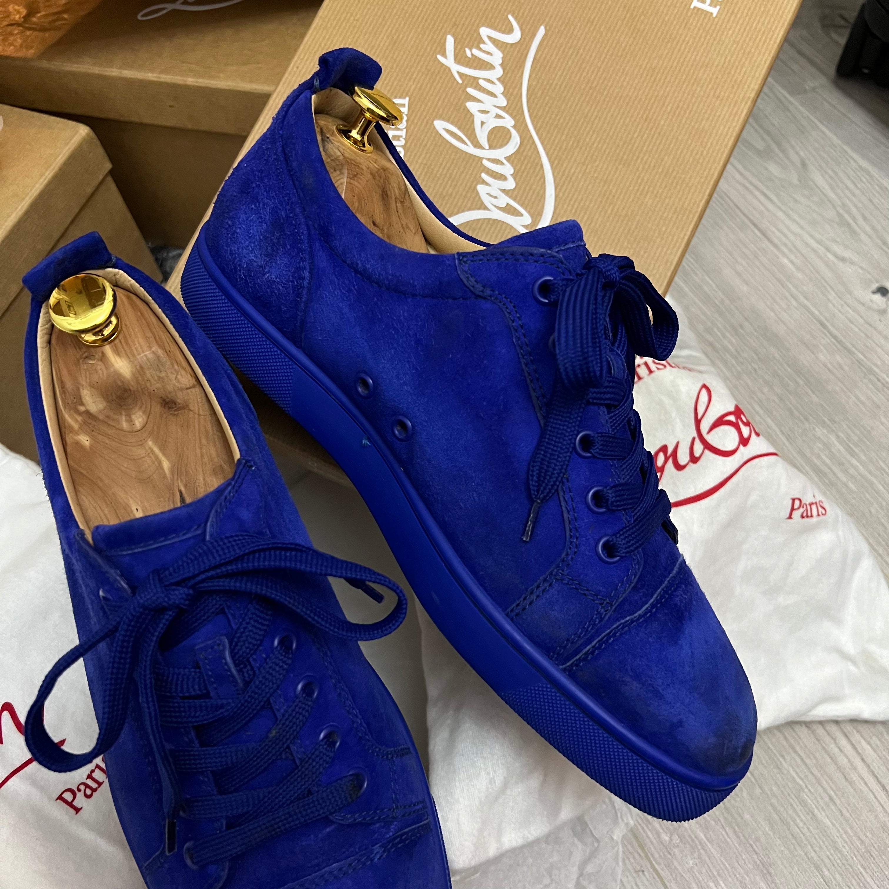 Authentic Christian Louboutin Blue Junior Azulejo Suede Sneaker 7.5UK 41.5 8.5US
