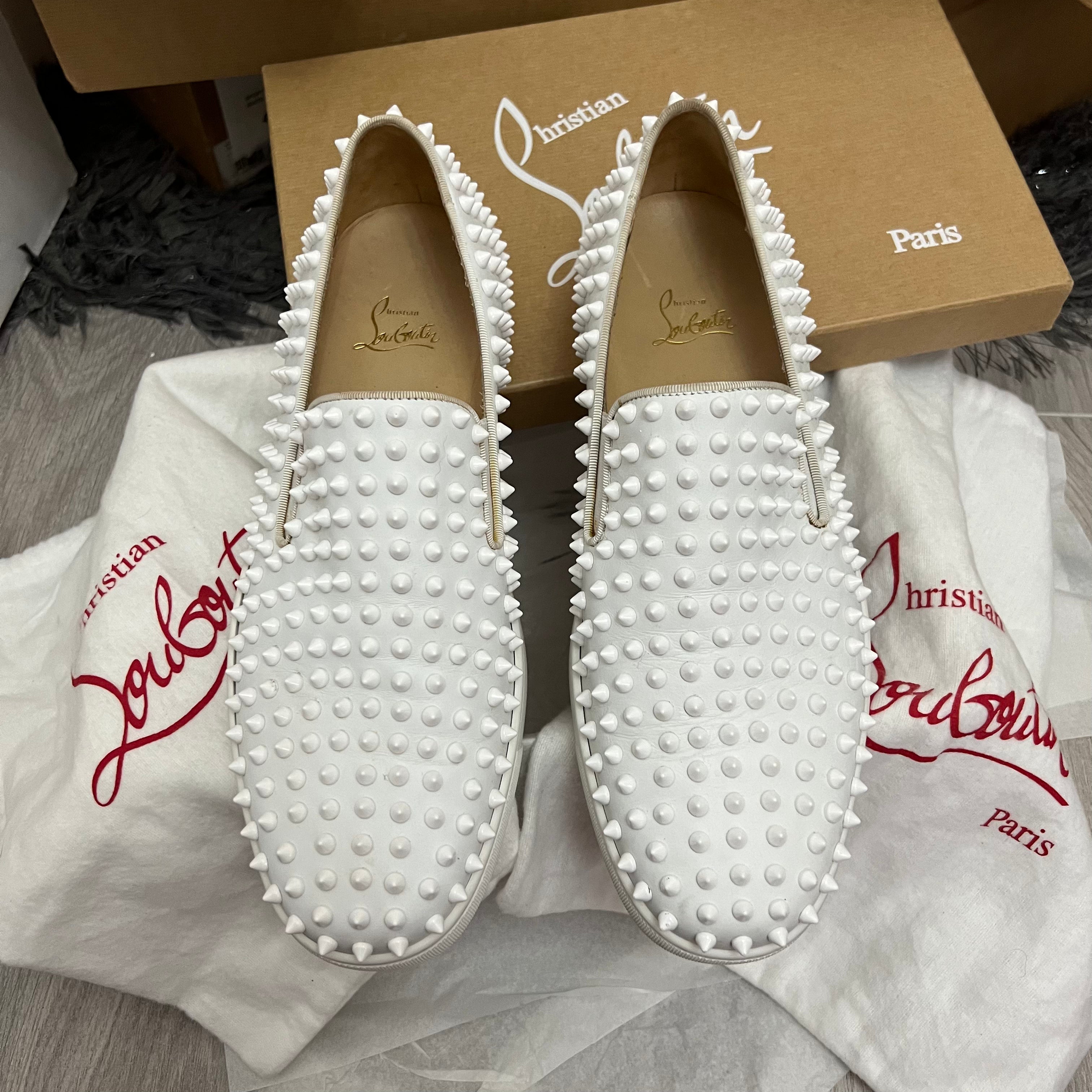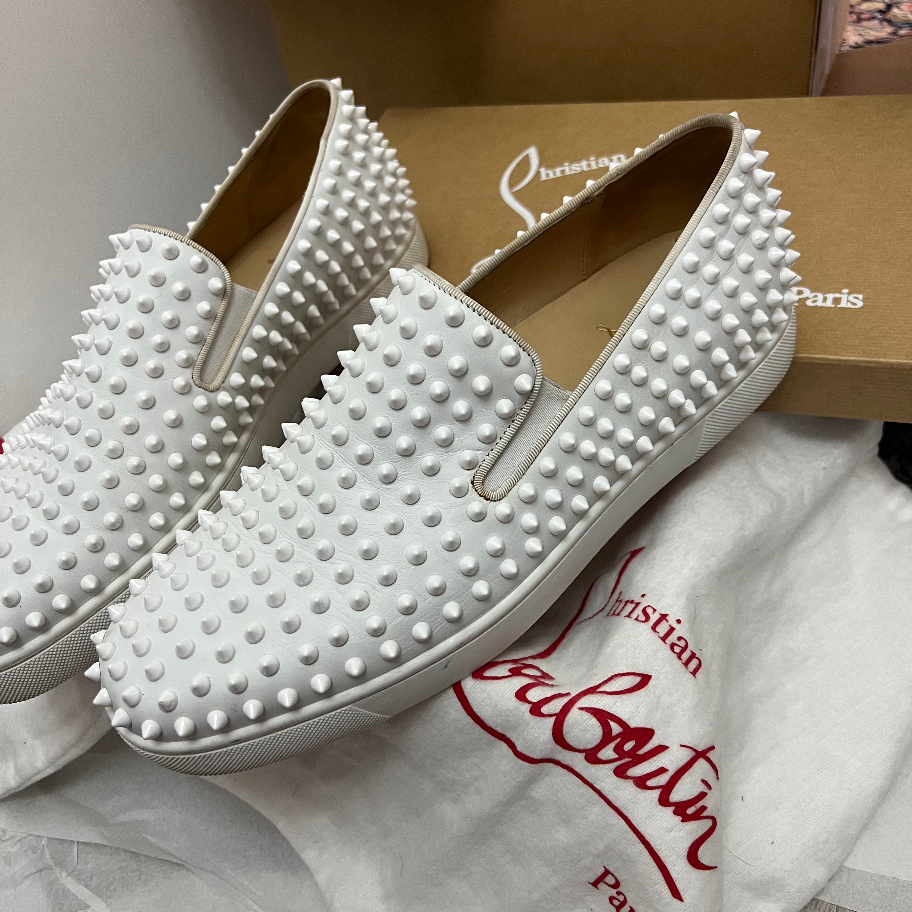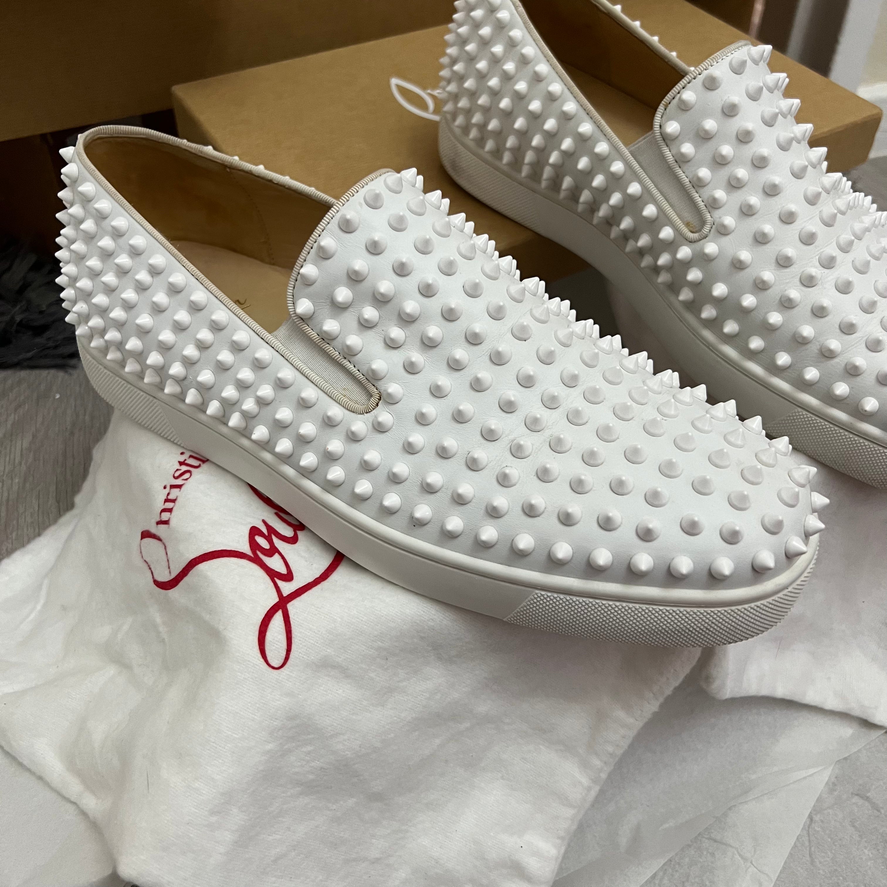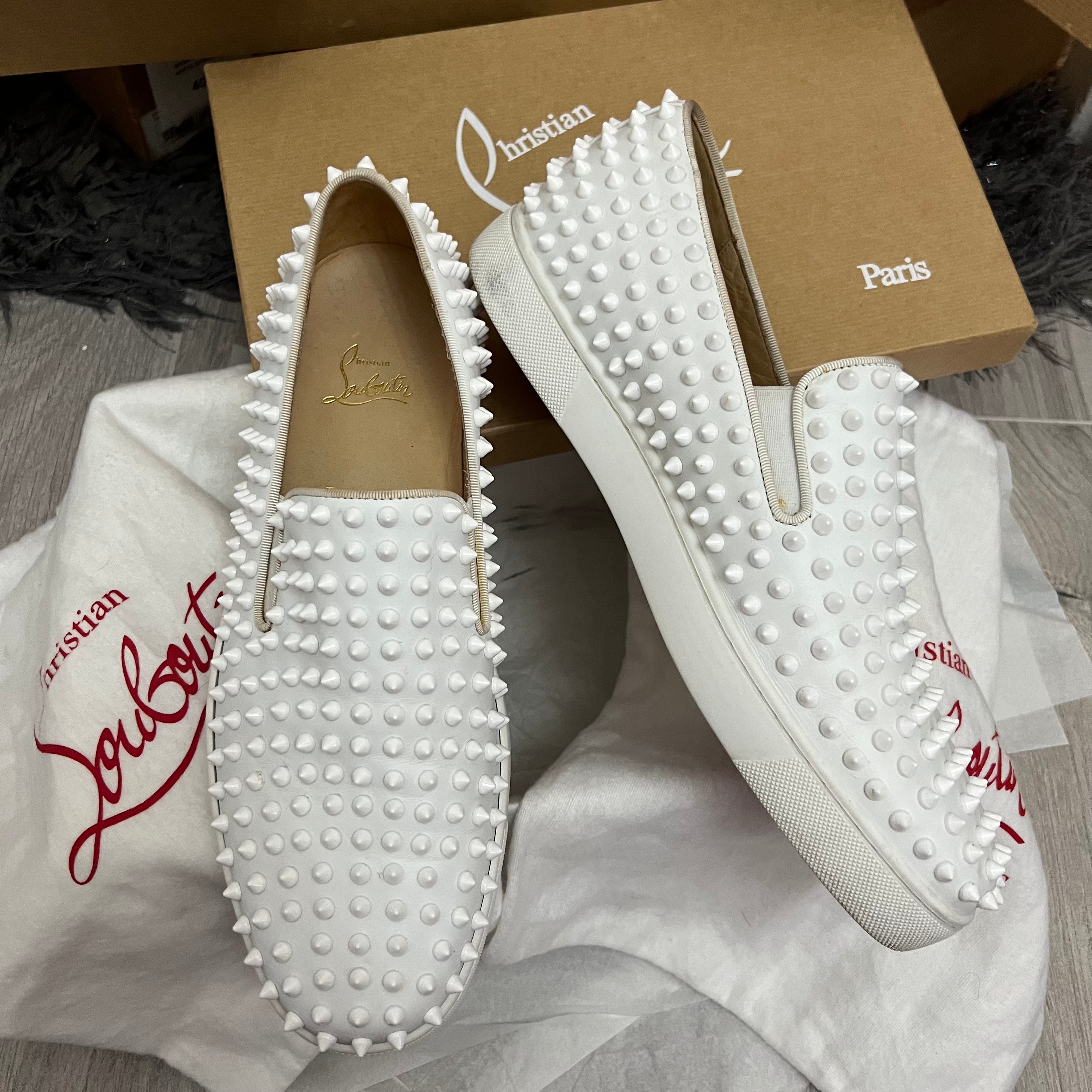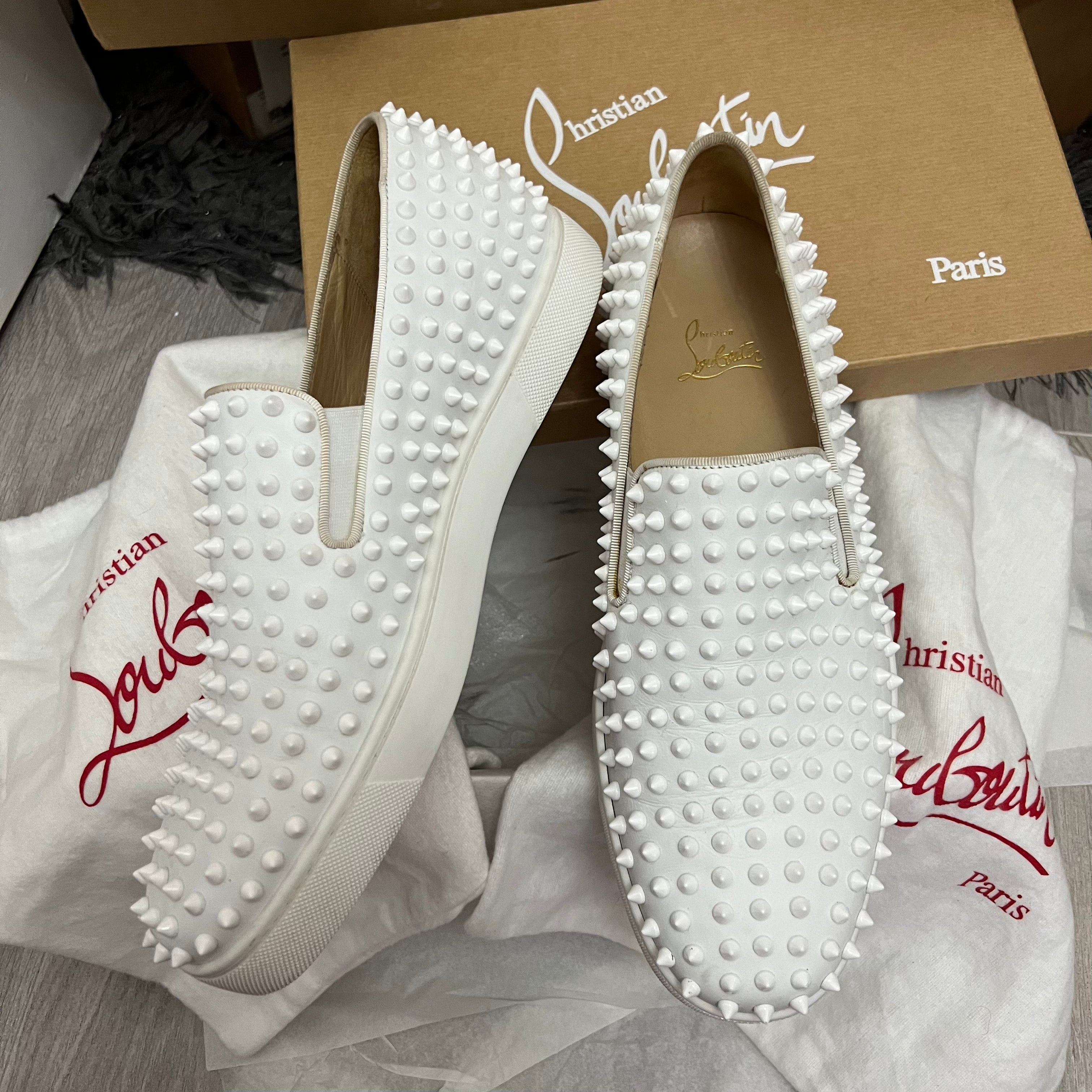 Authentic Christian Louboutin White Leather Rollerboat Sneakers 9.5UK 43.5 10.5US